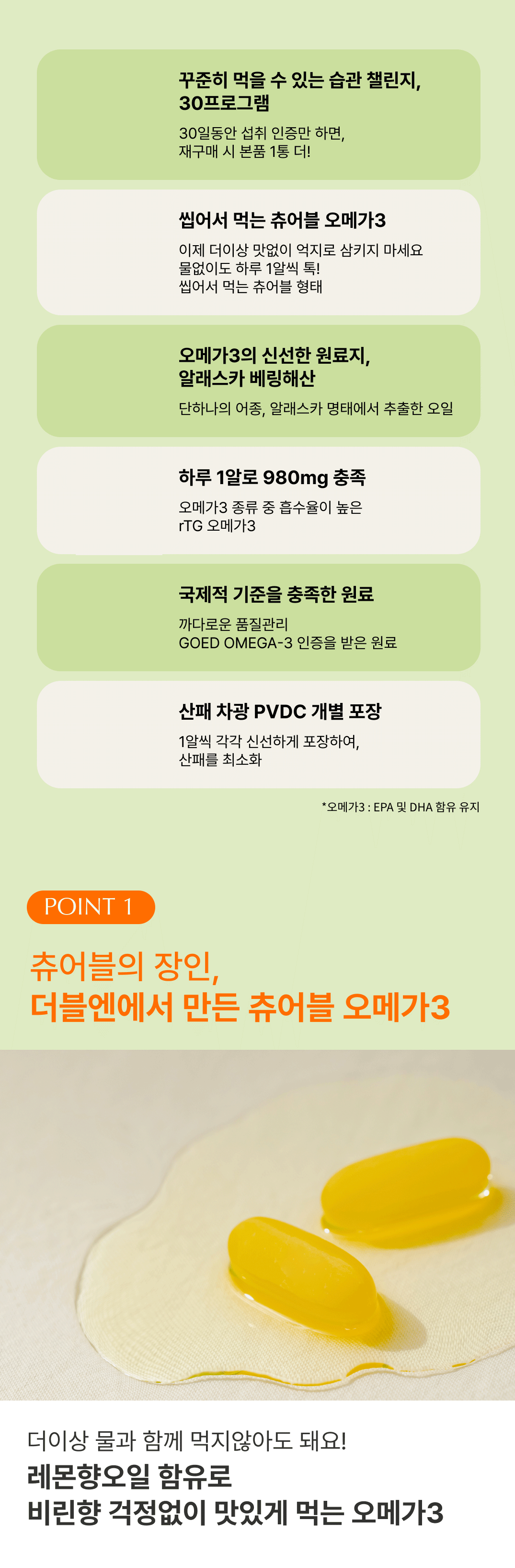물없이 씹어먹는 더블엔 츄어블 오메가3 1박스/30캡슐