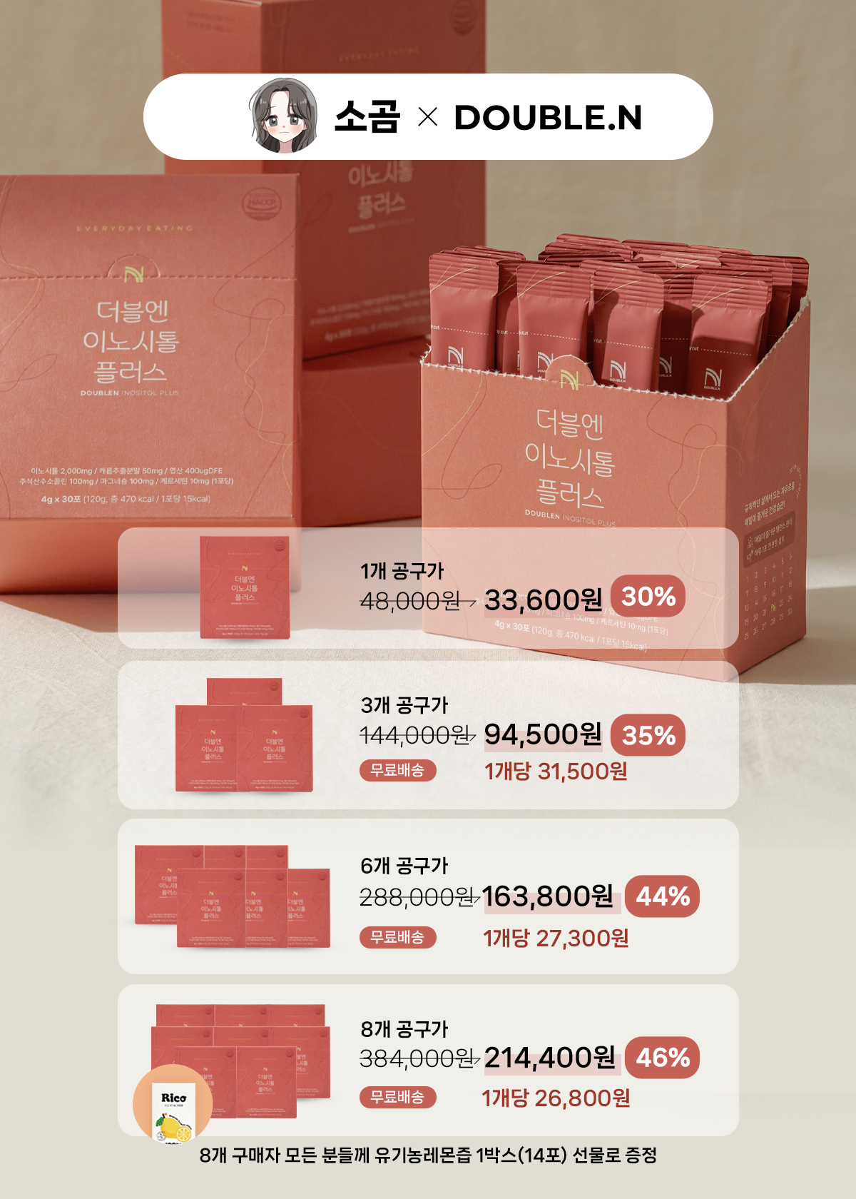 [소곰X더블엔] 이노시톨 플러스 1박스/30포 (1박스/3박스/6박스/8박스 구성)