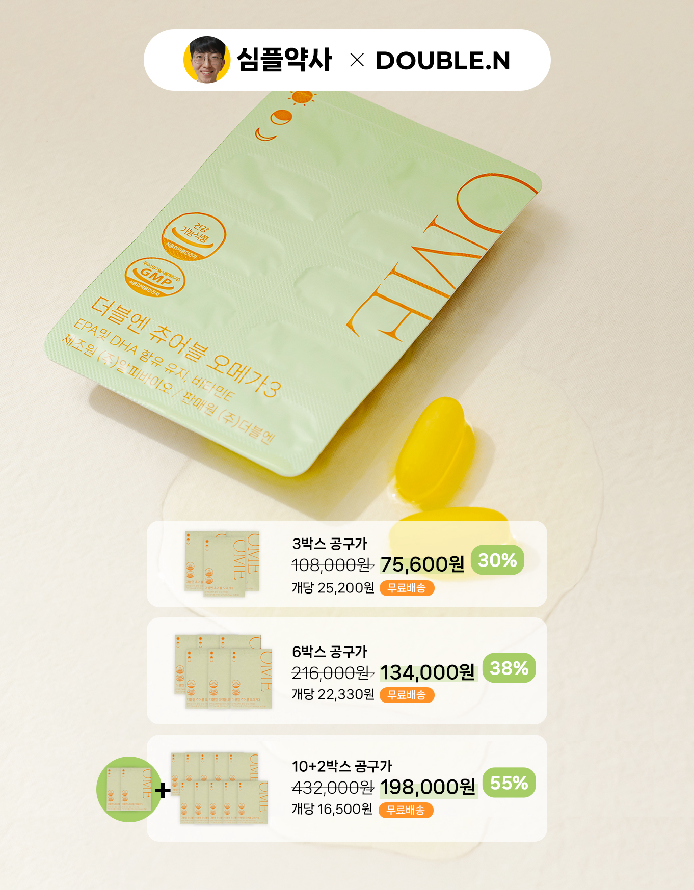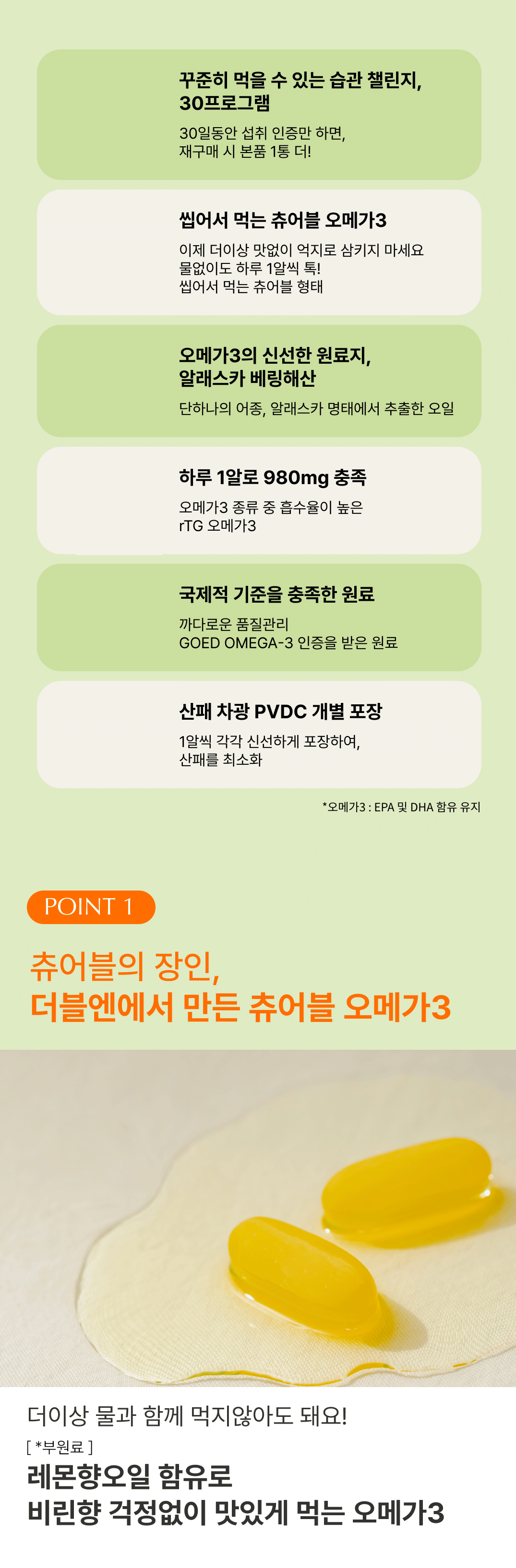 [심플약사X더블엔] 더블엔 츄어블 오메가3 1박스/30캡슐 (3박스/6박스/10박스)NEWSALE판매대기